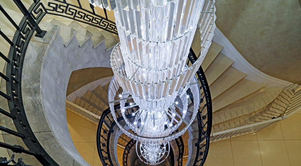 房主Terry Nachabe表示,这个9.8米高的灯饰是在中国设计,然后运回澳洲。他透露,当时甚至需要动用起重机才能把家具搬进餐厅。