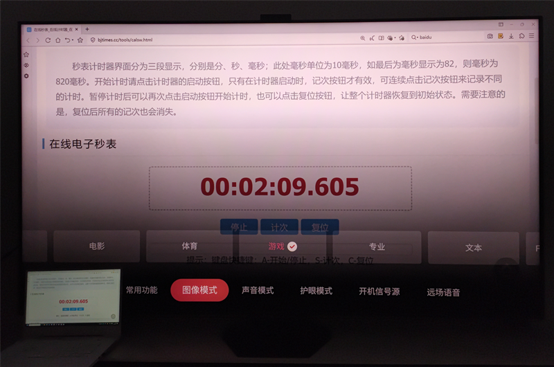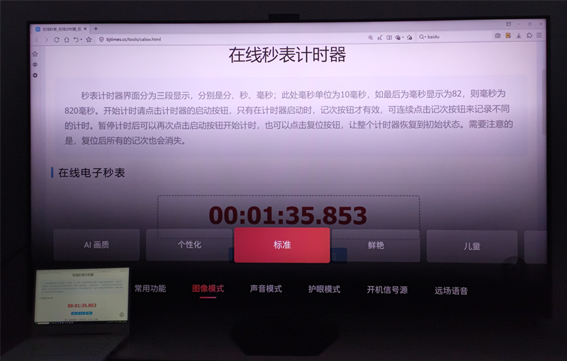 标准模式下,海信UX显示的毫秒数与笔记本屏幕完全一致。