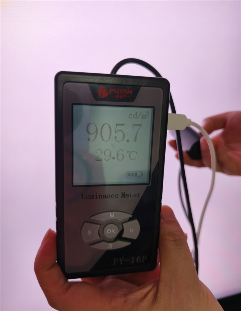 这是在关闭了HDR、全屏白色的情况下,我们直接使用色度计测试的亮度,905nit。