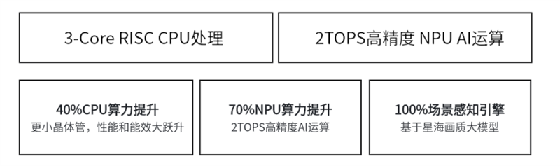 信芯H7是全球首颗光色同控AI画质芯片,包含3颗RISC-V核心,另外还有一个算力为2TOPS的NPU进行AI运算,可以实现3*26bit灰阶控制、15680点位色彩管理。