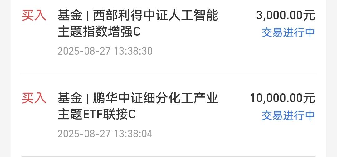 加仓3000“$西部利得中证人工智能主题指数增强C$(011833)”。消息面上,《关于深入实施“人工智能+”行动的意见》已经印发,其中明确提及了强化人工智能统筹,以及支持人工智能发展,这对于人工智能板块是重磅利好。此外,人工智能在这轮牛市里,表现非常出色,这也说明人工智能就是科技主线,也是A股市场主线。这是一个中证人工智能指数增强基,除了跟踪中证人工智能指数外,还会通过AI+量化选股获得指数以外的超额收益。从收益表现来看,西部利得人工智能近1年涨超108%,收益非常“能打”。现在大头的人工智能仓位还比较低,所以我今天选择加仓一次,看好人工智能后市表现!