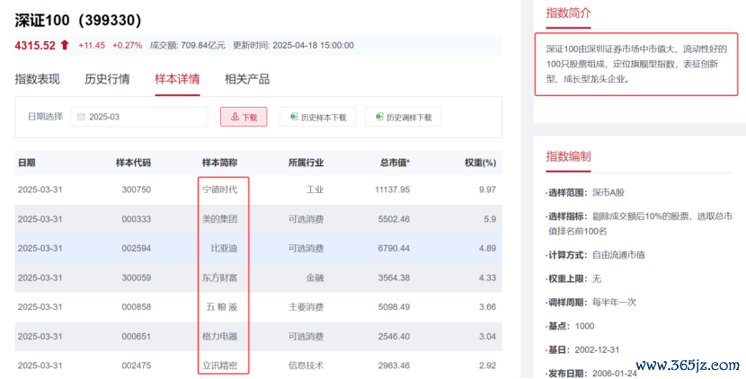 国证指数官网数据显示,深证100指数由深圳证券市场中市值大、流动性好的100只股票组成,定位旗舰型指数,表征创新型、成长型龙头企业,包括宁德时代、北方华创、中兴通讯、迈瑞医疗等各个领域的龙头。