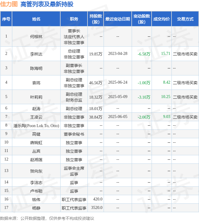 佳力图近半年内的董监高及核心技术人员增减持详情如下:日升鑫