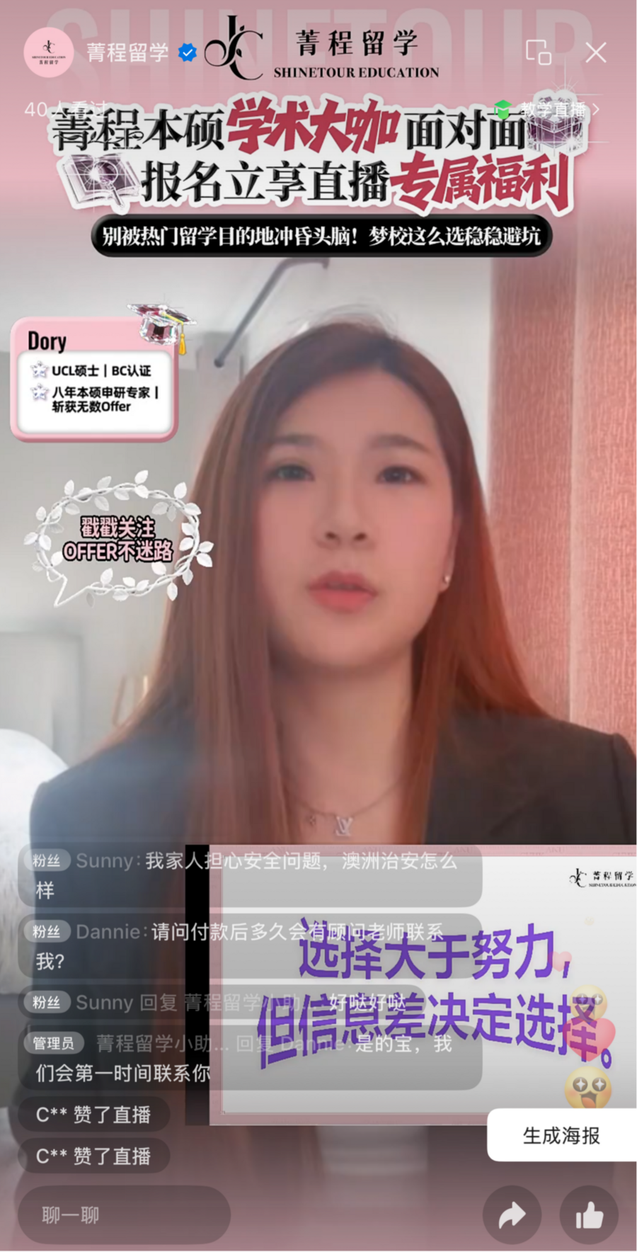 10月24日,致力于为广大学子提供全球高校本硕申请服务的菁程留学,在其“本硕学术大咖面对面”IP下开启了第二场直播,进一步帮助学子避开留学选校误区、掌握不同地区录取逻辑。该场直播主题为“别被热门留学目的地冲昏头脑!梦校这么选稳稳避坑”,历时两小时,围绕选校策略与文书优化两大核心,为怀揣留学梦想的学子搭建专业高效的交流平台,以深度指导破解申请迷局中融证券,延续了系列直播的优质服务品质,赢得参与者广泛好评。单场点赞量达2.6万次。这是菁程留学“本硕学术大咖面对面”IP下的第二场高质量留学干货直播,以专业申请干货学子直击莘莘学子申请痛点。